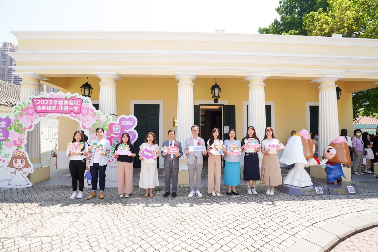 “2023年幸福家庭月系列活动「氹仔友」LOVE IN TAIPA! ”于30(今) 日在氹仔嘉模前地民事登记局氹仔婚礼室举行活动启动礼,是次活动以 “携手相爱、守护一生”为口号,推出“氹仔区婚庆吉祥物打卡活动”及“正向爱情观抽奬活动”,市民从即日起至8月31日可透过网络平台参与,亦可亲临民事登记局氹仔婚礼室前地进行打卡。此外,活动期间内在民事登记局氹仔婚礼室注册结婚的新人也将获赠「幸福家庭婚姻」推广礼物。活动详情可浏览「氹仔友」Facebook专页。
