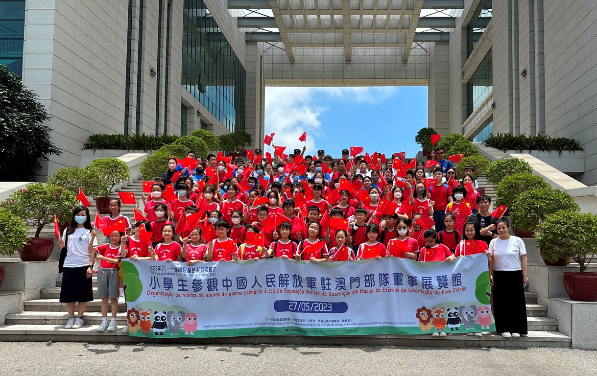 为庆祝六.一国际儿童节,六.一国际儿童节组织委员会(社会工作局、教育及青年发展局、法务局、体育局)与中国人民解放军驻澳门部队合办“2023六.一国际儿童节系列活动之小学生参观中国人民解放军驻澳门部队军事展览馆”,于2023年5月27日(星期六)顺利进行。活动目的是让澳门小学生一起感受节日的气氛,及对中国人民解放军驻澳门部队有更多的认识,藉此培养爱国爱澳精神。教育及青年发展局组织了来自澳门9所学校超过260名小五及小六学生参观中国人民解放军驻澳门部队氹仔军营驻军军史馆和解放军军史陈列馆。
