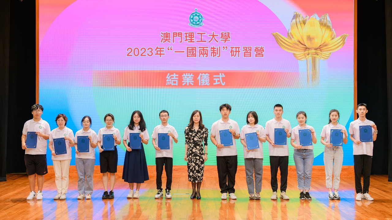 同场举行了2023年“一国两制”研习营结业仪式,由主礼嘉宾为参加本次研习营的师生颁发证书。 “一国两制”研习营内容丰富多元,包括系列主题学术讲座、工作坊研讨及实地文化考察。主题学术讲座分别以澳门社会发展及经济制度、基本法、社团发展、以及青年发展为切入点,从多角度分析澳门社会经济等各方面发展的定位与策略,以实例探讨“一国两制”的成功实践。