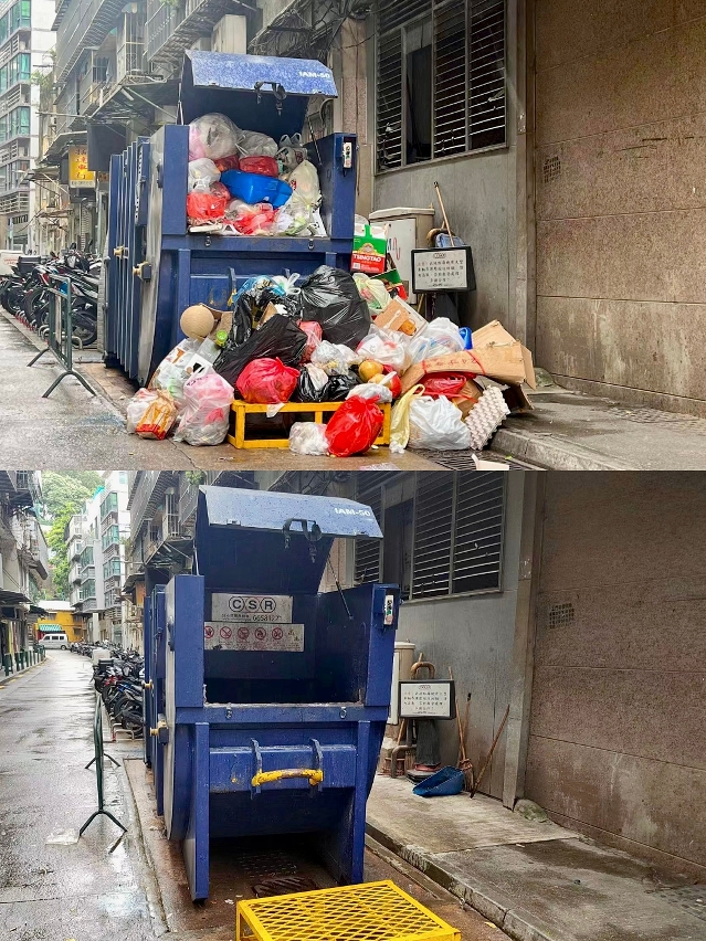 巿政署呼吁,市民应暂将垃圾贮存在家中待八号风球除下后才弃置,并应优先处理容易腐烂的生活垃圾,而大厦管理实体应暂时把垃圾桶留置在大厦内,避免放置在公共街道上被台风吹倒而加剧垃圾堆积的情况。