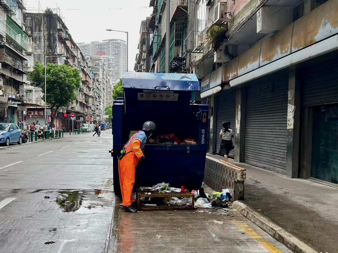 为应对八号风球悬挂期间可能出现的环境卫生状况,市政署协调澳门清洁专营有限公司于安全情况下派员加强清理市面垃圾。