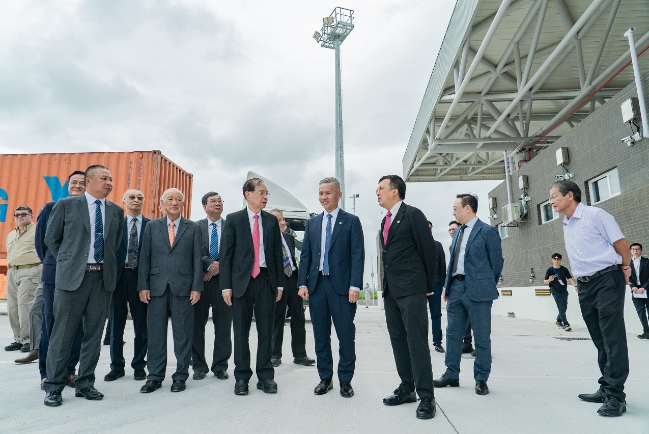港珠澳大桥澳门跨境货物转运站开幕仪式于今(8)日上午举行。经济及科技发展局戴建业局长、澳门特别行政区海关李煜辉助理关长、交通事务局郑岳威副局长,以及行业商会领导共同主持开幕式。