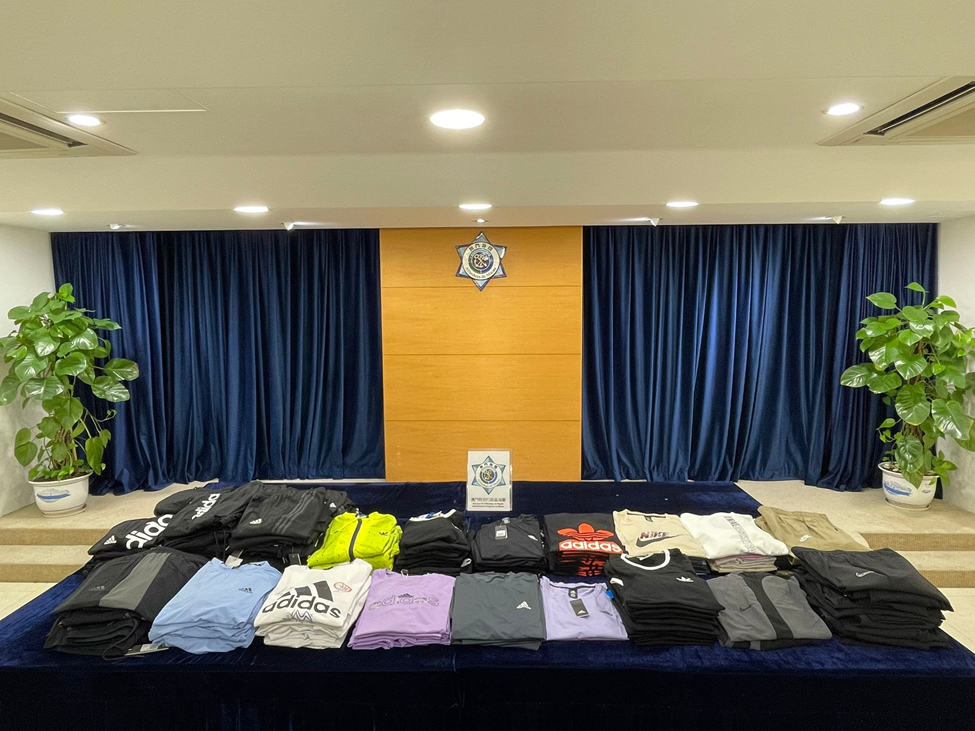 海关早前于市面巡查期间,发现位于中区的店铺怀疑售卖侵权的服装产品。于8月9日,海关见时机成熟,对上述店铺采取行动,合共查获269件怀疑侵犯知名运动品牌商标之产品(上衣及裤),共有2名澳门居民涉案,已带返海关总部调查,经相关品牌鉴定人对扣押物进行鉴定,结果全属假冒产品,按巿价计算,总货值约9万4千澳门元。