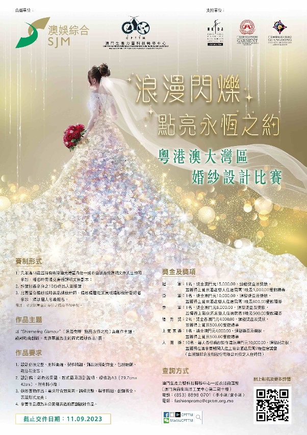 由澳门生产力暨科技转移中心与澳娱综合度假股份有限公司合办“粤港澳大湾区婚纱设计比赛”截止交件日期延至9月11日。