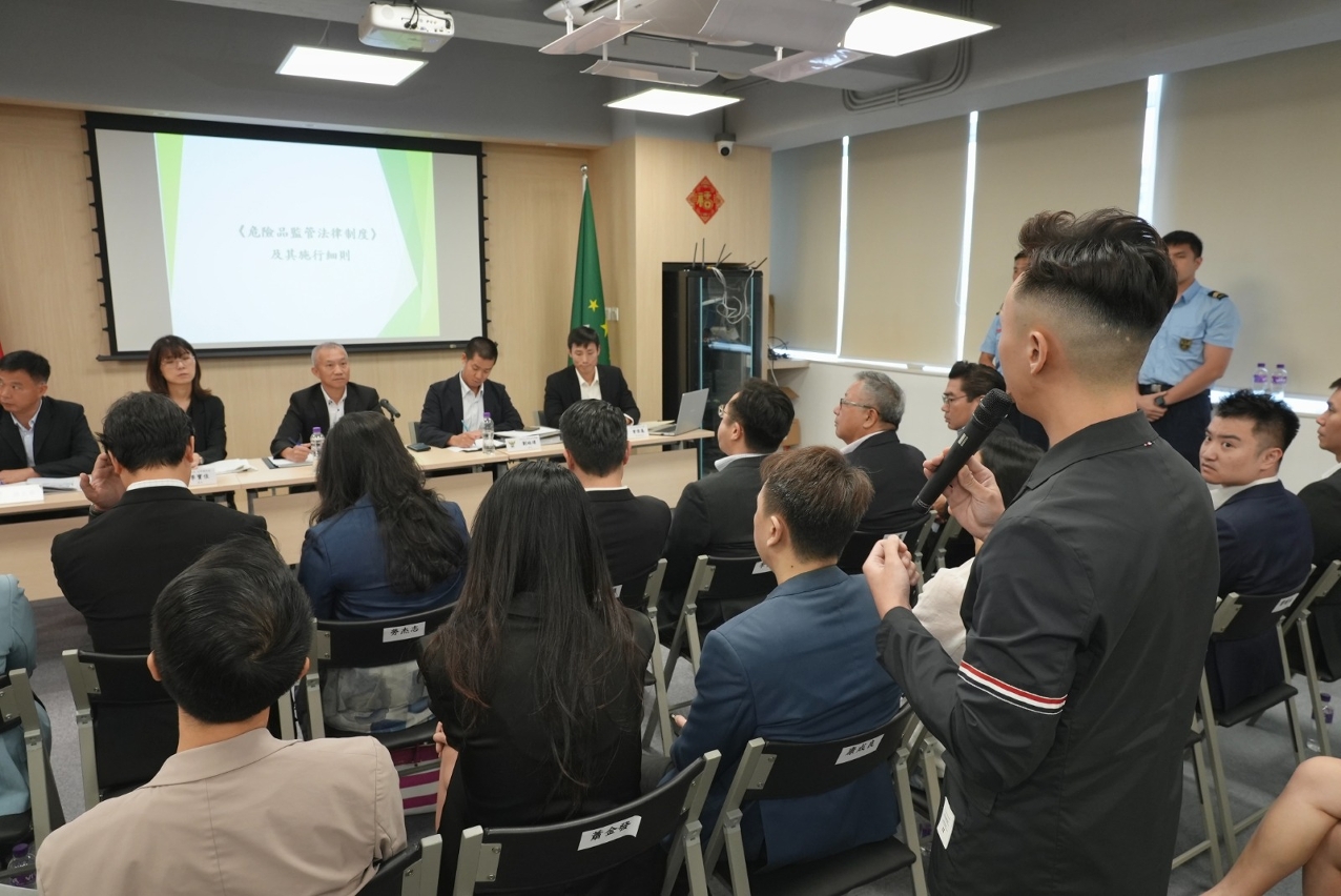 于8月31日下午,消防局联同澳门工商联会举办《危险品监管法律制度》及相关补充规范的讲解会,主要阐释第12/2022号法律《危险品监管法律制度》正式生效实施,并重点讲解新法律与业界息息相关的内容,包括其主要施行细则及相关行政长官批示、危险品用户的义务、危险品的分类、以及危险品的豁免量等,以便相关业界能更好地履行新法律规定的相关责任及义务,构建更安全的工商业环境。
