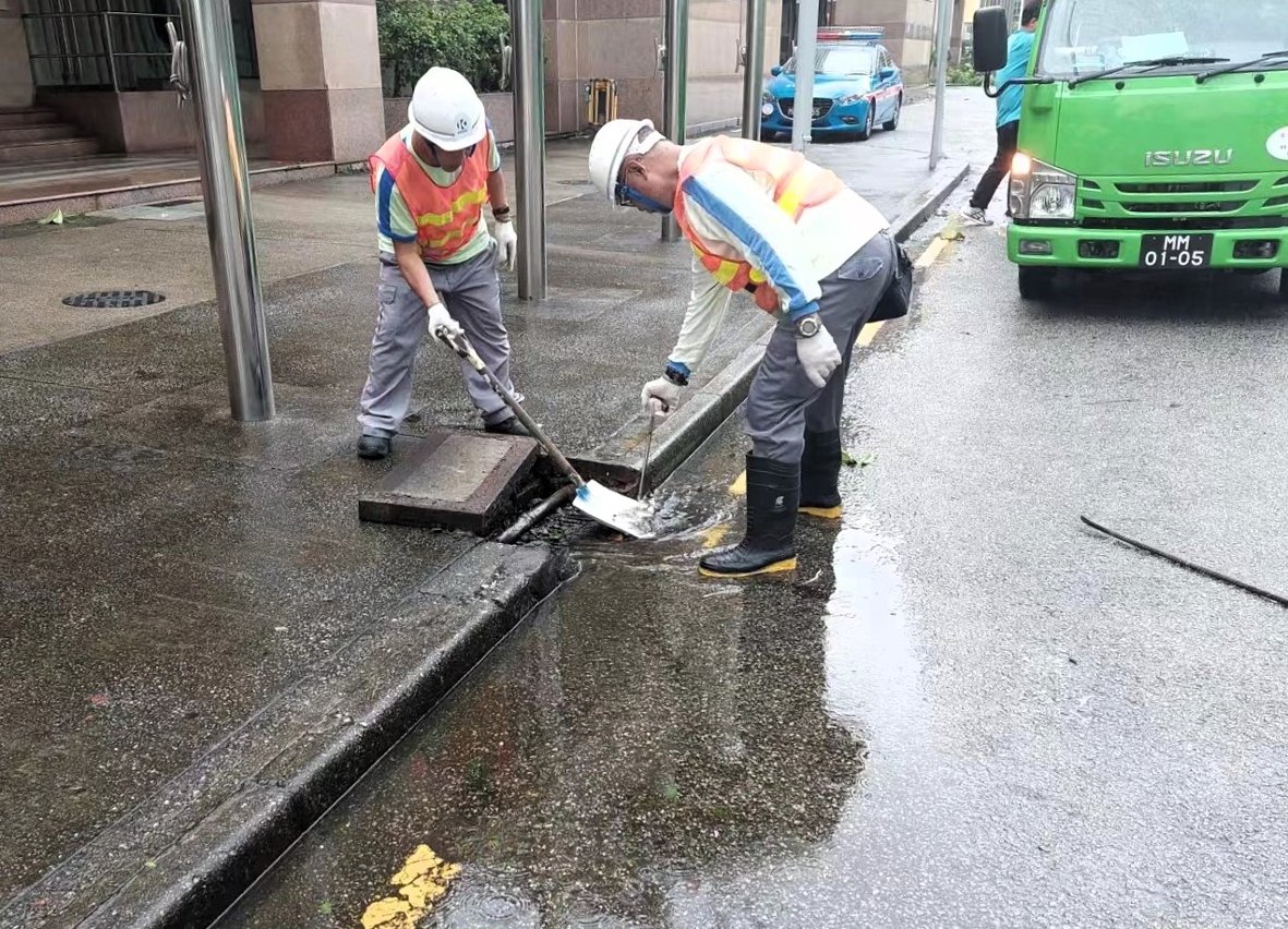 市政署人员于改挂八号风球时,已加紧派员清理行车路面上倒塌树木及断枝,首要开通本澳各主要干道的交通,以便救援工作顺利进行;同时市政署人员亦正持续检查各泵房及渠道的运作,以及即时疏通受垃圾堵塞之雨水井,以确保积水能有效排走,尽快舒缓水浸的情况。