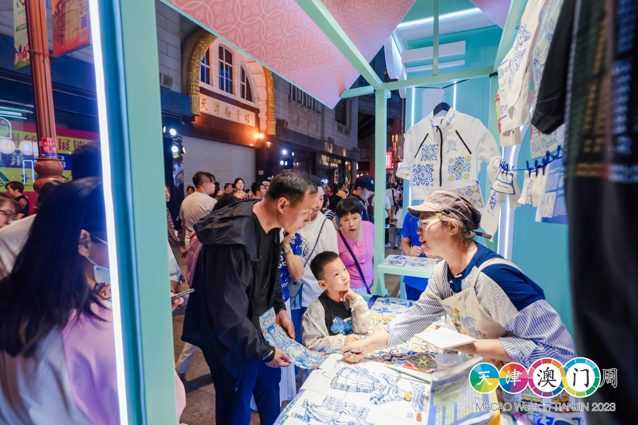 文化局展位以“澳门多元文化”为主题,澳门世界文化遗产景点作为主轴,让当地民众瞭解澳门中西文化共融的特色、历史渊源,以及别具建筑特色的世遗景点,呈现澳门历史城区之美。此外,文化局是次组织葡萄牙瓷砖画手艺人参与“天津澳门周”,展示及介绍葡萄牙瓷砖画制作工艺,驻场人员向到访者推广澳门非物质文化遗产、艺文节庆盛事等丰富的文化元素,宣传澳门丰富多彩的中西文化融合的特色,藉以提升观众访澳意欲,展开澳门文化城市探索之旅。展位吸引不少当地居民驻足参观,瞭解澳门文化之美,有到访者表示曾到澳门旅游,感受亲切,对澳门的印象良好,将来会再到澳门展开文化旅游。