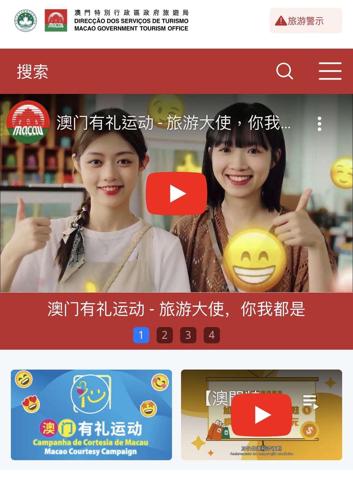 在此之上,进一步整合旅游局其他相关的服务及讯息,如各大专题网站、澳门旅游新闻+、澳门旅游数据+、社交媒体及其他服务资讯页面。此外,以访澳旅客为使用对象的澳门旅游推广网站(www.macaotourism.gov.mo)依然保持运作,为旅客提供最新游澳资讯。