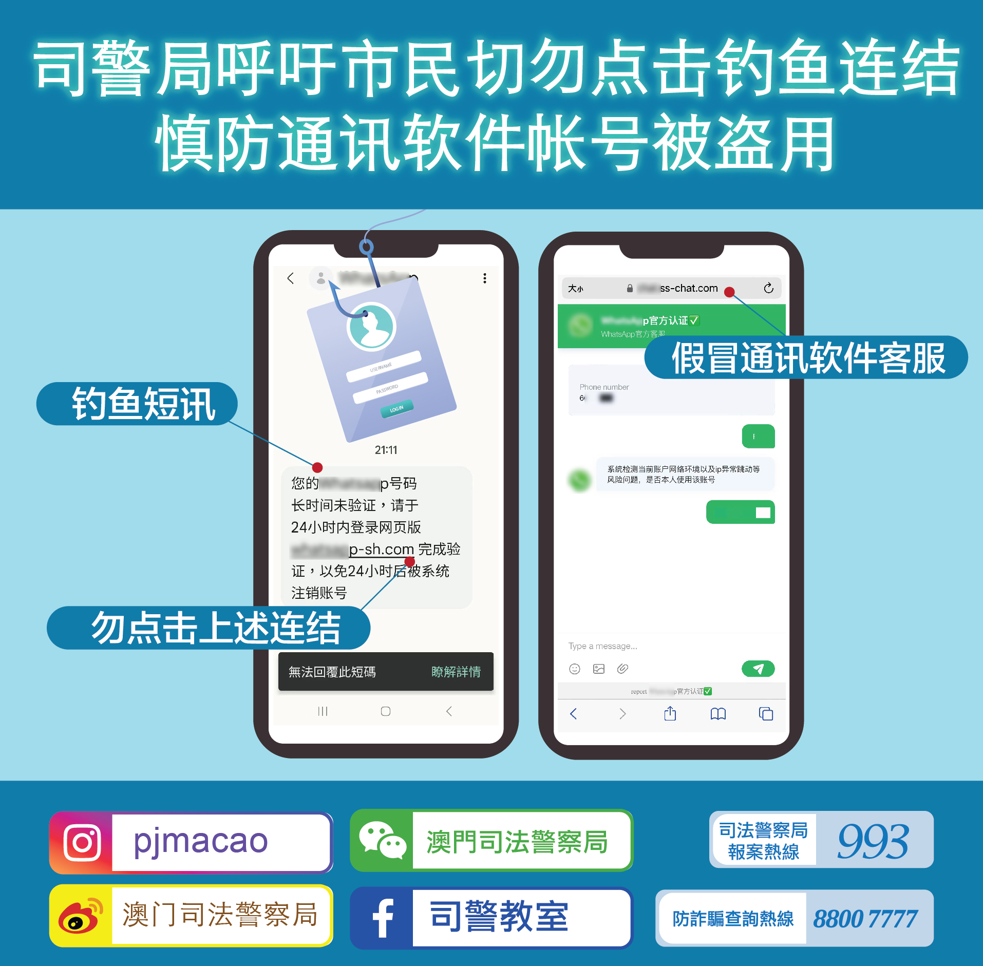 鉴于近年有不法分子透过上述手段盗取市民通讯软件帐号后,再向该帐号内的“好友”进行诈骗。为此,司警局呼吁市民: