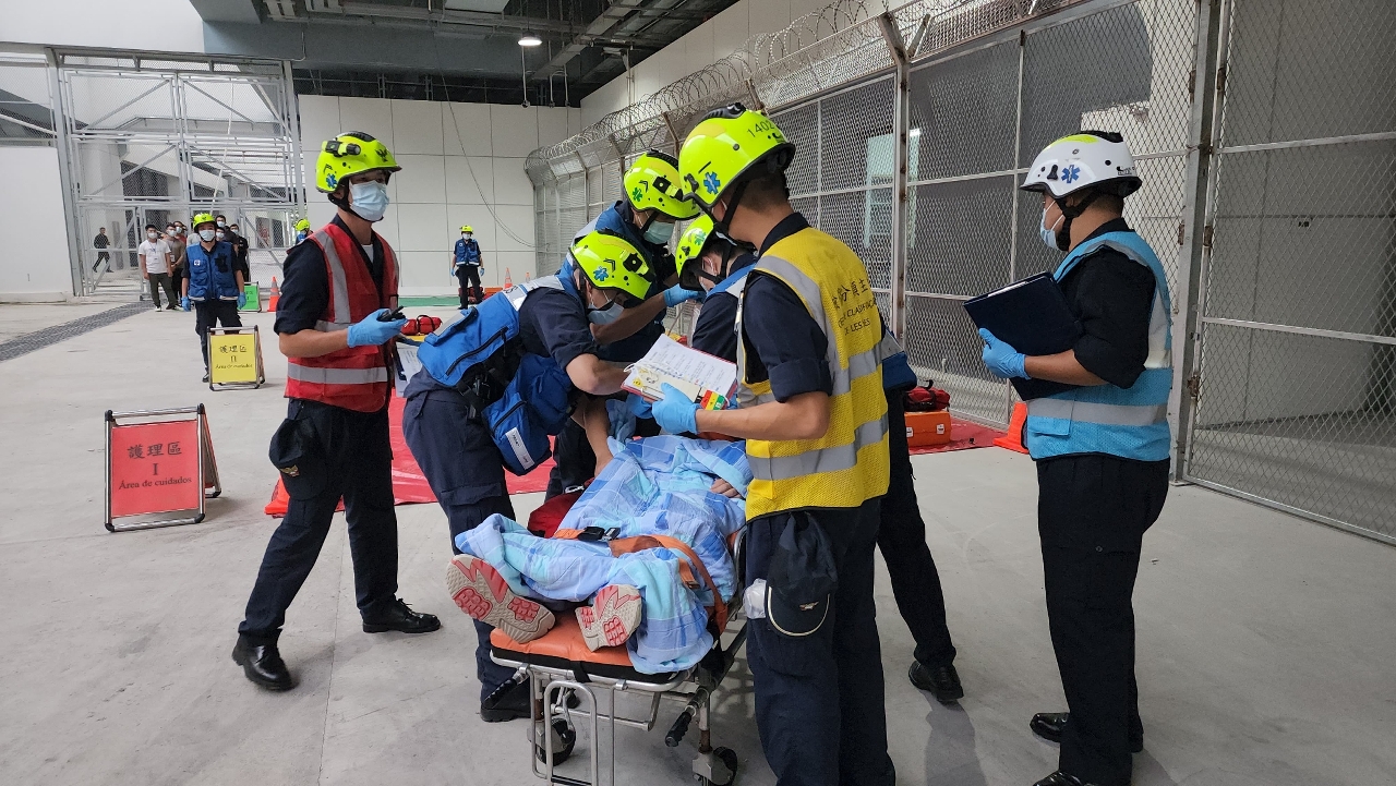 另外,在模拟火警发生期间,横琴方边检范围内的肇事前车司机(本澳居民),因受轻伤要求回澳就医。因此,在相关部门的协调下,安排澳方救护车进入珠海横琴方的管辖区域进行跨界运送伤者的服务,并将该名伤者模拟送往澳方医院治理。