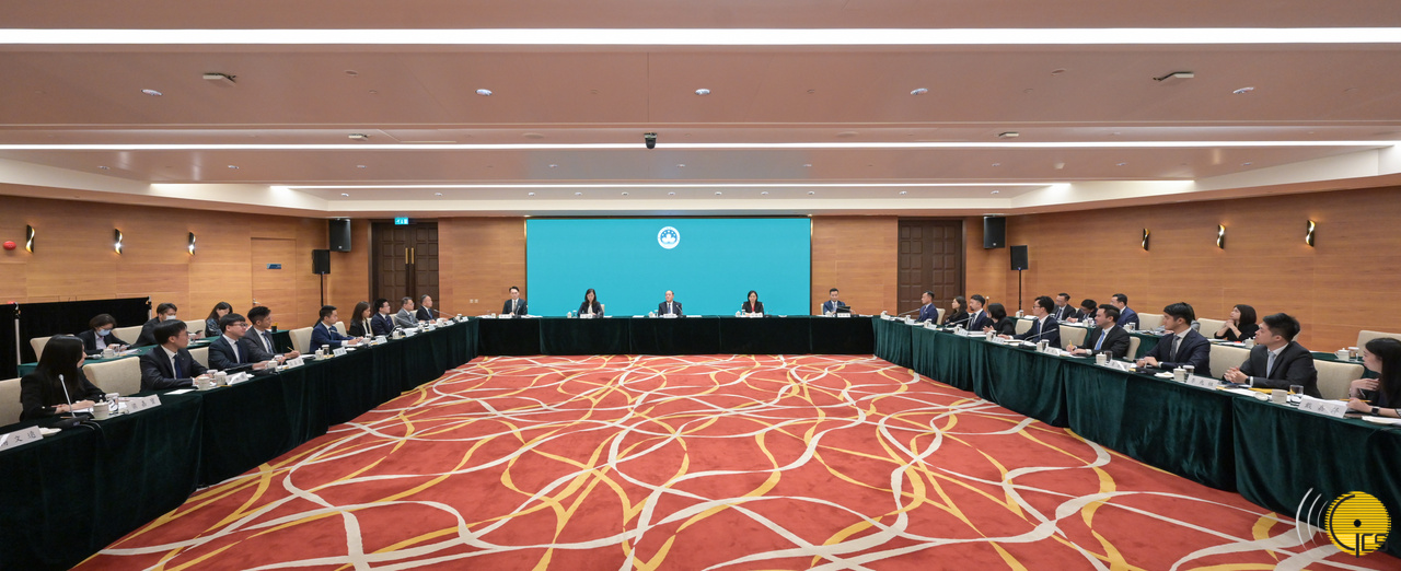 行政长官贺一诚今(18)日在中国与葡语国家商贸合作服务平台综合体与中华全国青年联合会澳区委员座谈,就特区政府制定《2024年财政年度施政报告》听取意见及建议,并就横琴粤澳深度合作区建设、经济适度多元、青年融入国家发展等议题交流意见。