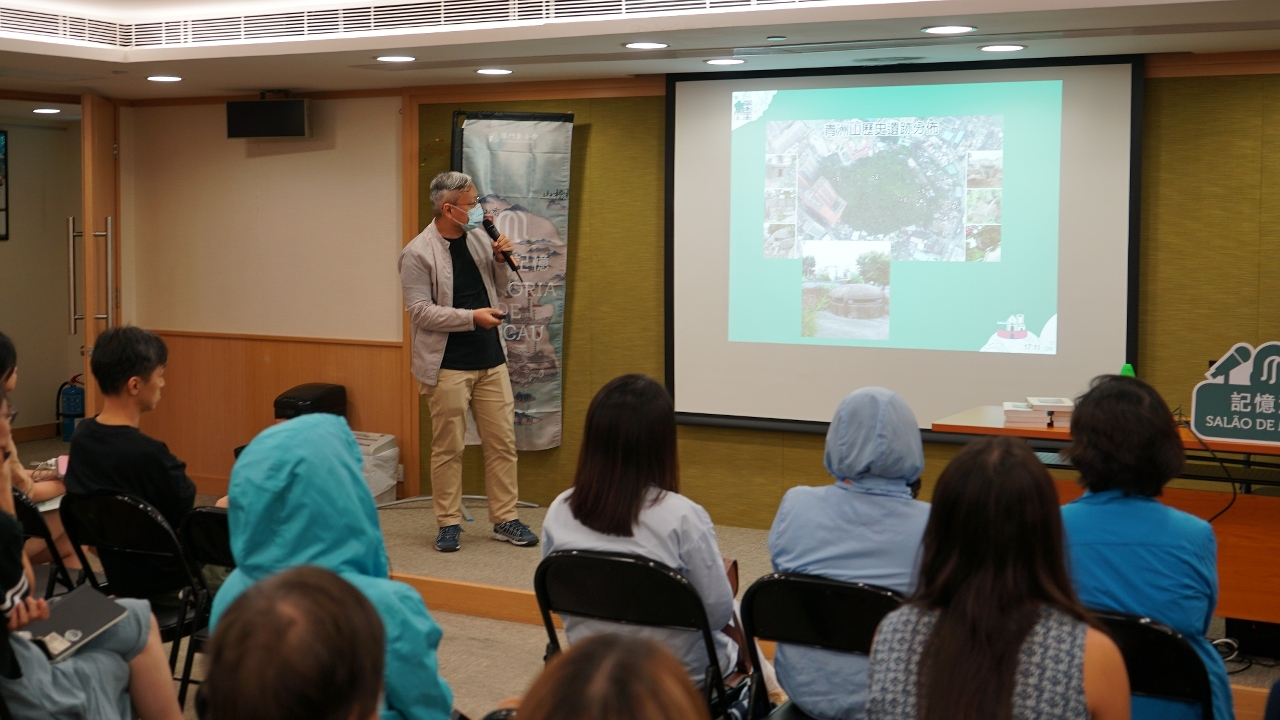 郭桂豪老师曾带领劳校历史学会进行青洲山学术考察,登山30余次。在讲座中,他分享了与学生开展考古田野调查的心路历程,并透过丰富的文献和图片,娓娓道出包括围岛墙、青洲避静院、英坭厂和兵营等各项遗迹的故事,重构了各项遗迹的分布图,犹如带领读者回到过去,游走于昔日青洲山上。