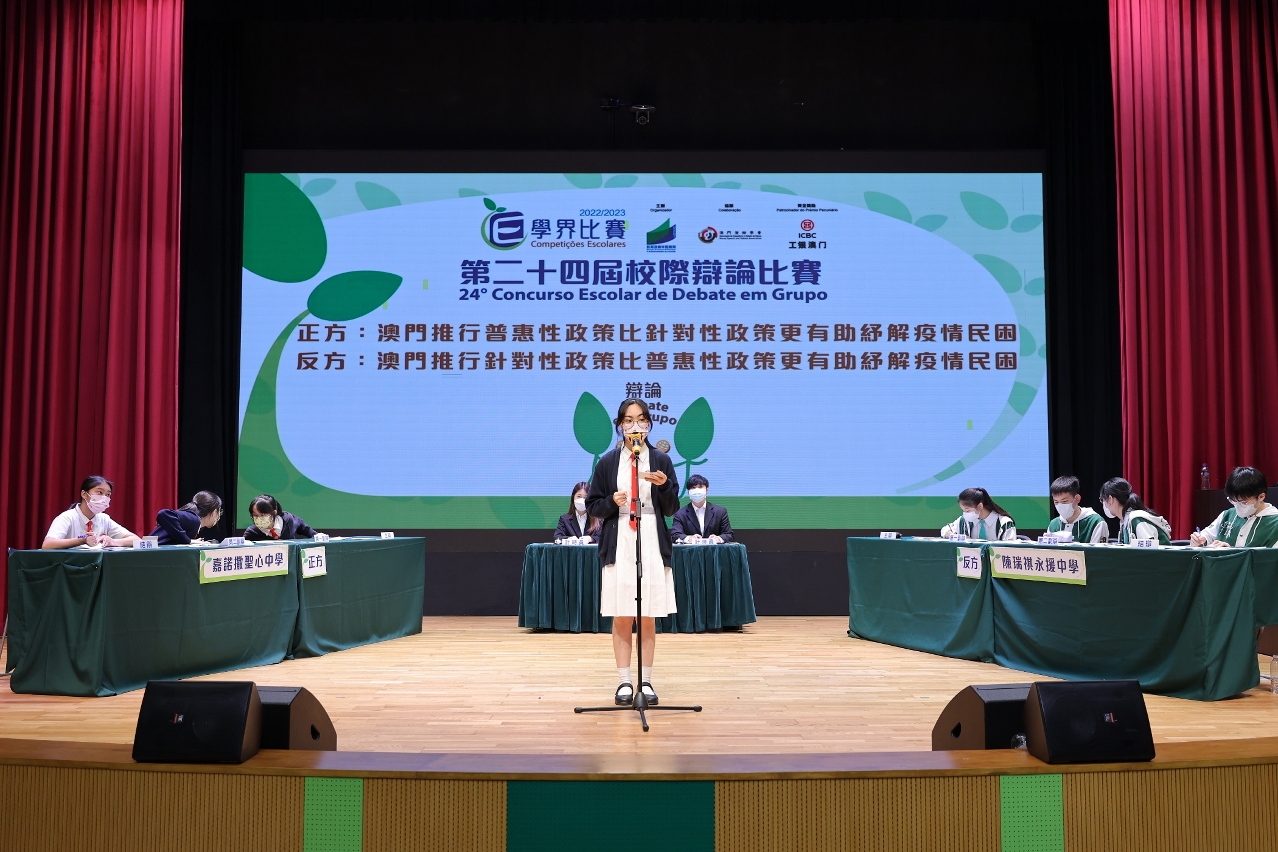 为培养学生的分析和逻辑思维能力,训练其语言表达能力和技巧,由教育及青年发展局主办、澳门演辩学会协办、中国工商银行(澳门)股份有限公司赞助奖金的2023/2024学年“第二十五届校际辩论比赛”将于2023年10月至11月期间假中葡职业技术学校礼堂举行。