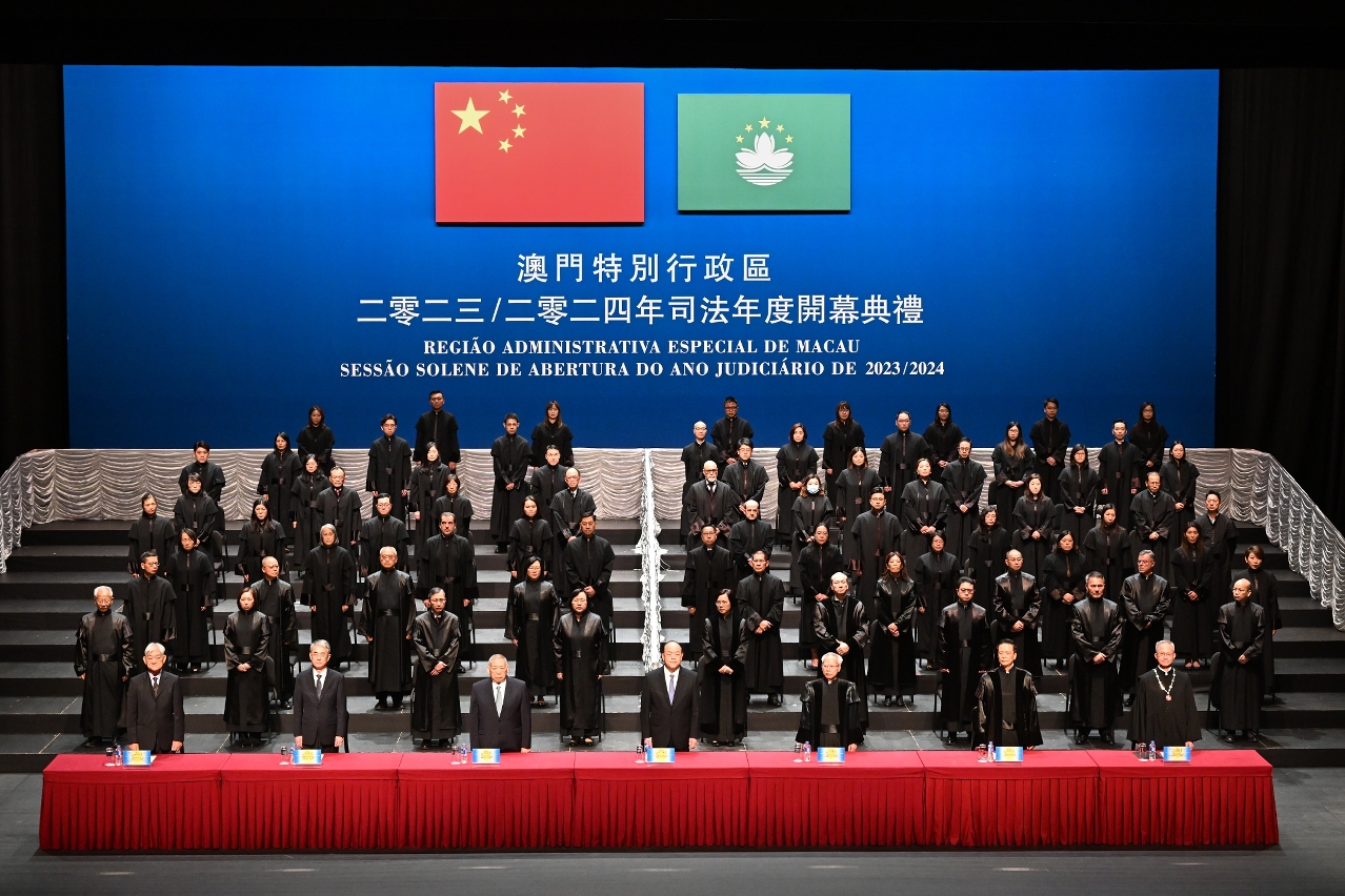 澳门特别行政区2023/2024年司法年度开幕典礼于10月20日下午3时30分假澳门文化中心综合剧院举行。典礼由行政长官贺一诚主持,立法会代主席崔世昌、终审法院院长岑浩辉、行政法务司司长张永春、检察长叶迅生、推荐法官的独立委员会主席刘焯华和澳门律师公会理事会主席黄显辉列席主礼台。