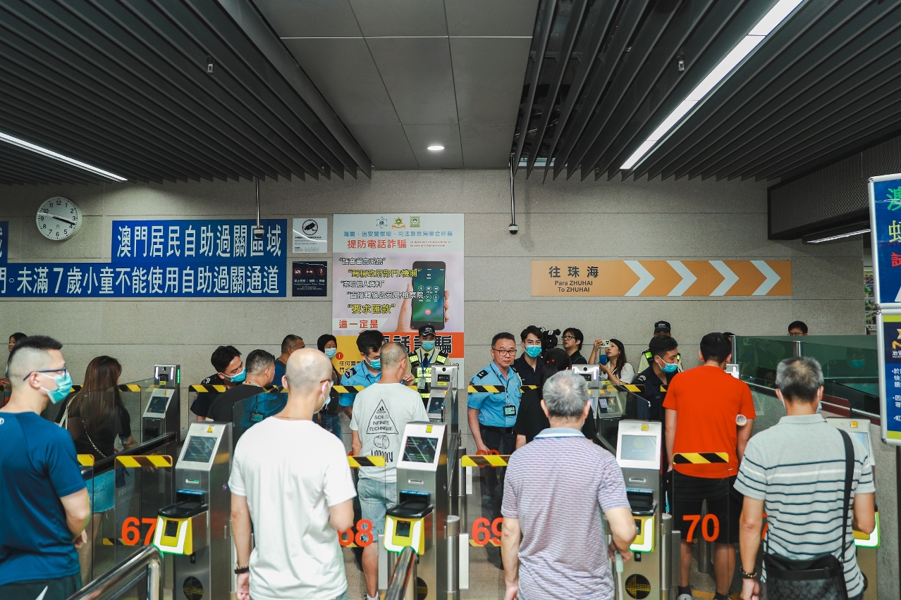 治安警察局积极发展智慧警务,不断推动口岸通关便利化,为提升通关体验,治安警察局在澳门保安部队事务局的协助下于本年第二季在关闸口岸装设10条“虹膜自助通道”,分别设于离境大堂及入境大堂各5条。