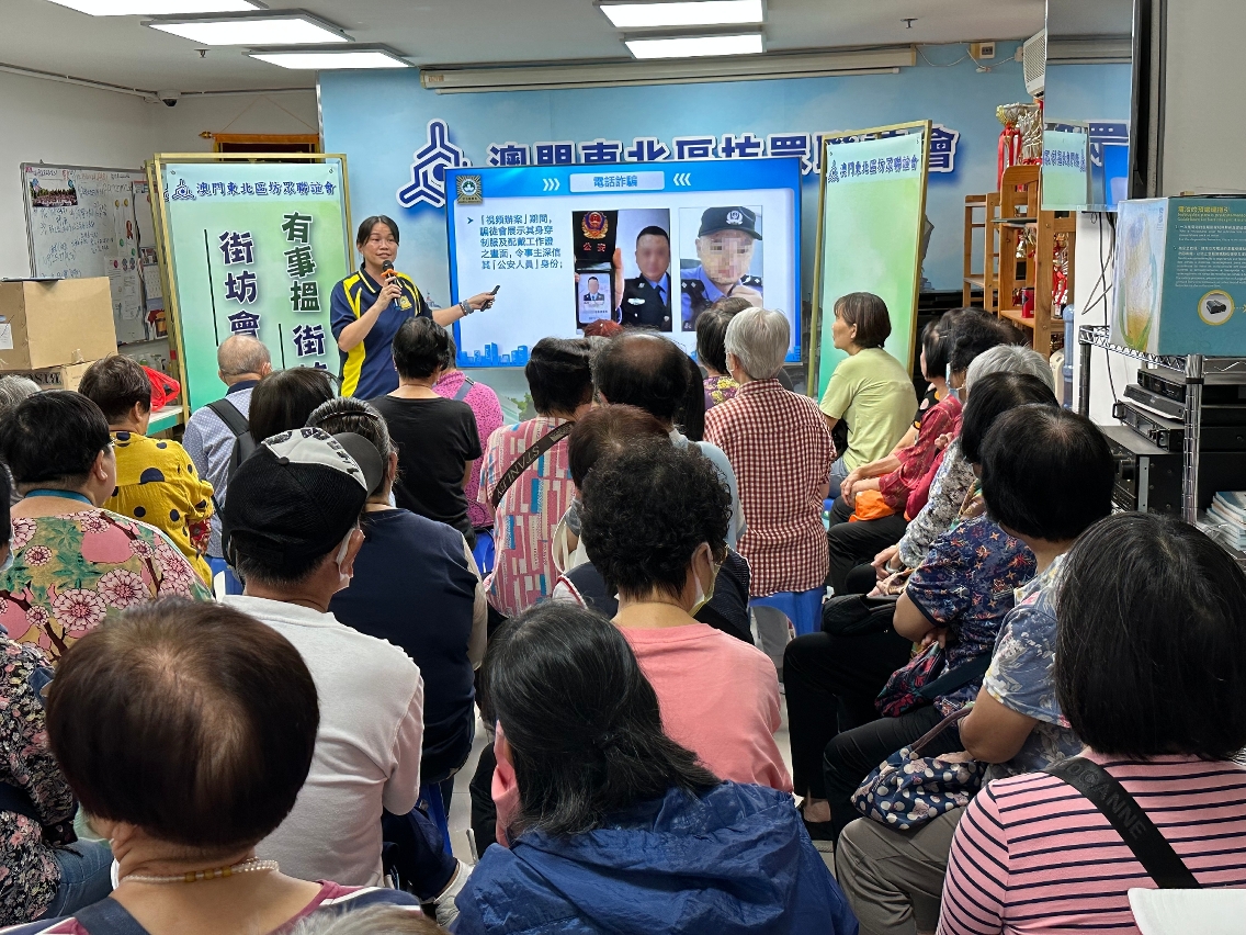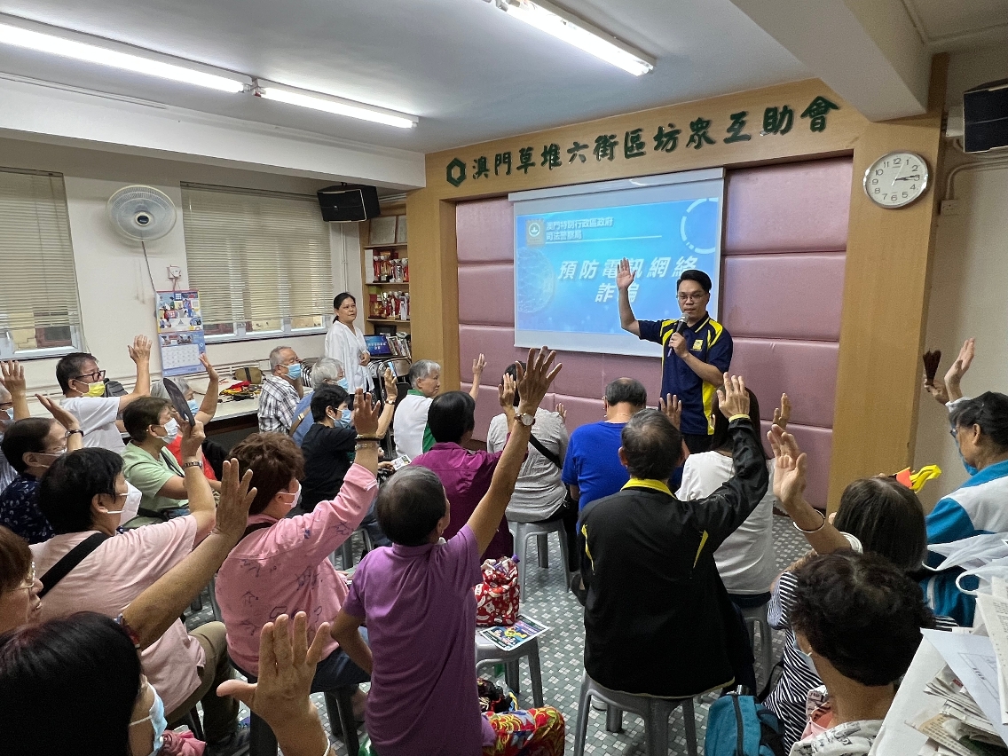 因应近期本澳电话诈骗案件持续多发,有不少长者堕入骗局,司法警察局与本澳多个社团、坊会及长者中心合作举办预防电话诈骗讲座,冀能提升长者的防骗意识,同时藉着加强与社会各界的联动合作,警民携手共建“全民防骗”社会。