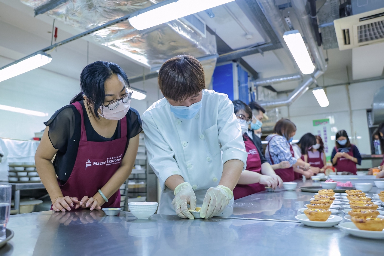 葡挞制作技艺及葡萄牙瓷砖画制作工艺已于2020年被列入本澳的非物质文化遗产清单中。葡挞是以面粉、牛油、鸡蛋、牛奶、忌廉、砂糖为原料所制成的焦糖酥皮蛋挞,是本澳广受欢迎的特色甜点。而葡萄牙瓷砖画工艺是指使用釉药在生砖上手绘图案,根据不同颜色釉药需求的温度,放入窑炉以1000-1100℃烧制8小时而成,再拼贴成画。是次工作坊邀请本澳非遗清单项目的传习群体或资深工艺家担任导师向参加者介绍两项技艺的概况,展示制作葡挞或葡萄牙瓷砖画的过程,参加者可透过亲身制作感受这两项技艺的精髓。