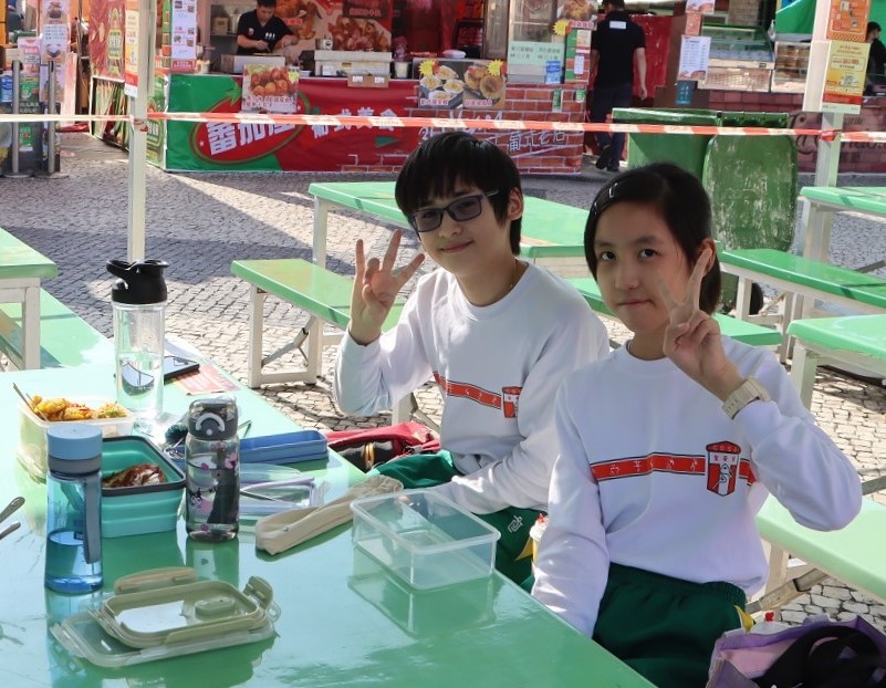 环境保护局于澳门美食节现场举办「环境保护局吉祥物与您畅游美食节」活动,组织了绿色学校圣若瑟教区中学第三校近三十位师生参与,共同实践减少使用一次性餐具、资源垃圾分类回收、厨余回收、惜食等“源头减废”行为。