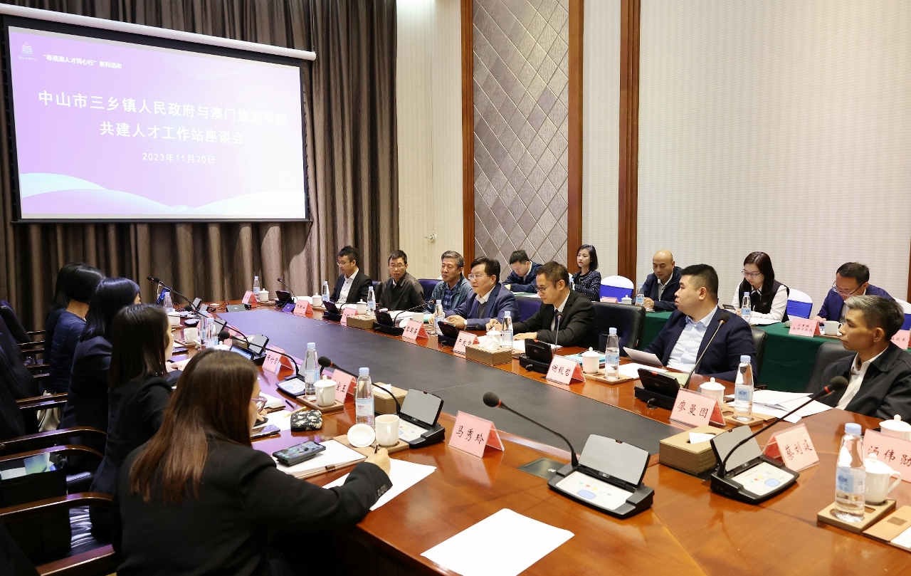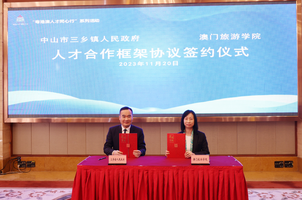 为配合中央关于建设粤港澳大湾区高水准人才高地的部署,中山市三乡镇政府与澳门旅游学院开展校地合作,充分发挥各自优势,促进澳门人才与内地互联互通,资讯交流和教育资源共用,2023年11月20日澳门旅游学院院长黄竹君率领代表团前往中山市三乡镇,与中山市三乡镇人民政府进行人才合作框架协议签约仪式,签署仪式后双方领导随即为“澳门旅游学院中山(三乡)人才工作站”揭牌。这标志着学院与中山的人才培养工作及旅游教育合作迈上了新台阶,也是对大湾区发展规划的积极响应。