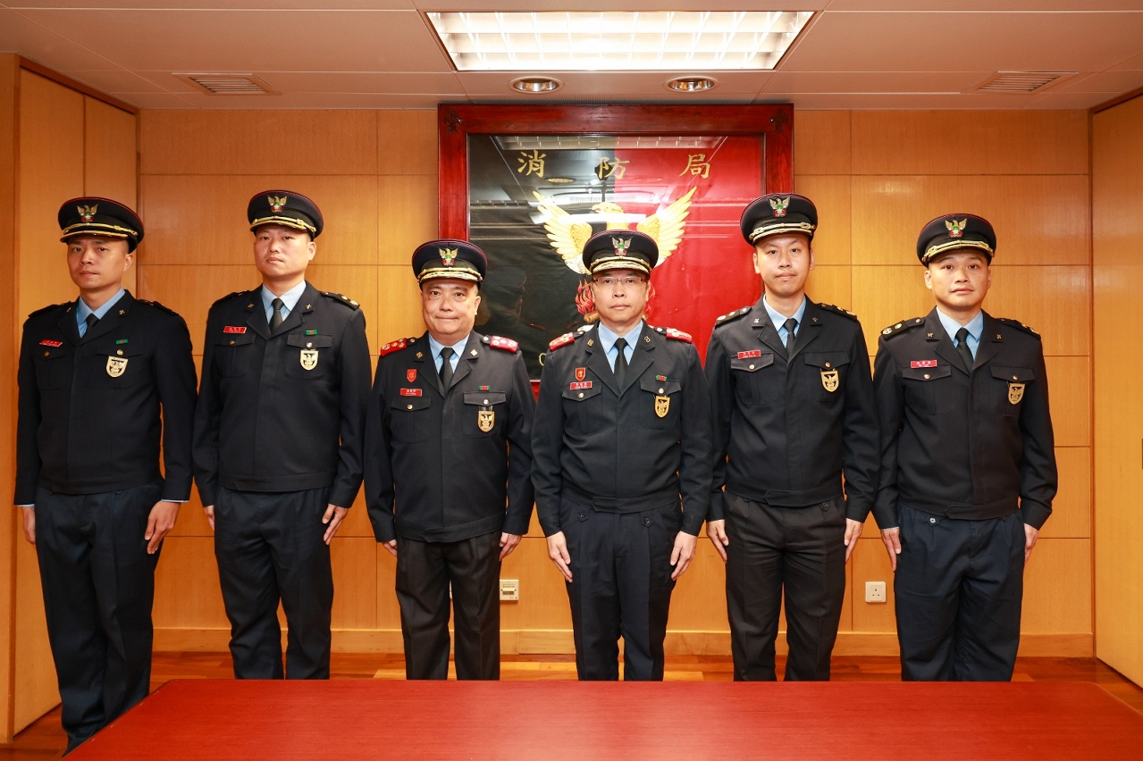消防局于2023年12月11日上午,在消防局总部暨西湾湖行动站举行了一等消防区长的晋升仪式。仪式由消防局局长梁毓森消防总监主持,其他出席官员还包括副局长区耀荣副消防总监、以及各部门主管级官员。晋升仪式中,各领导分别为获晋升的人员戴上新肩章,并送上热烈祝贺。