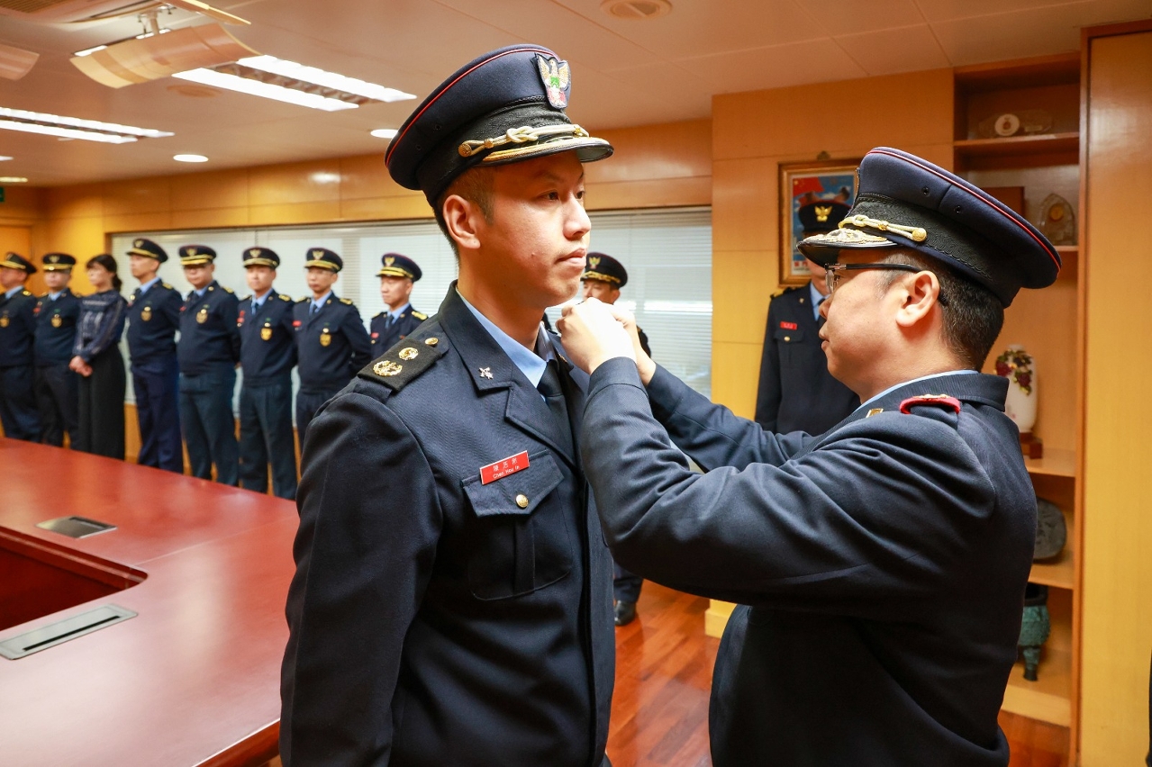 梁毓森局长在仪式上勉励各官员要克尽己任、廉洁奉公、遵守法纪,继续在各自的岗位上发挥所长,为澳门社会的安全稳定做好各项工作,贡献力量。