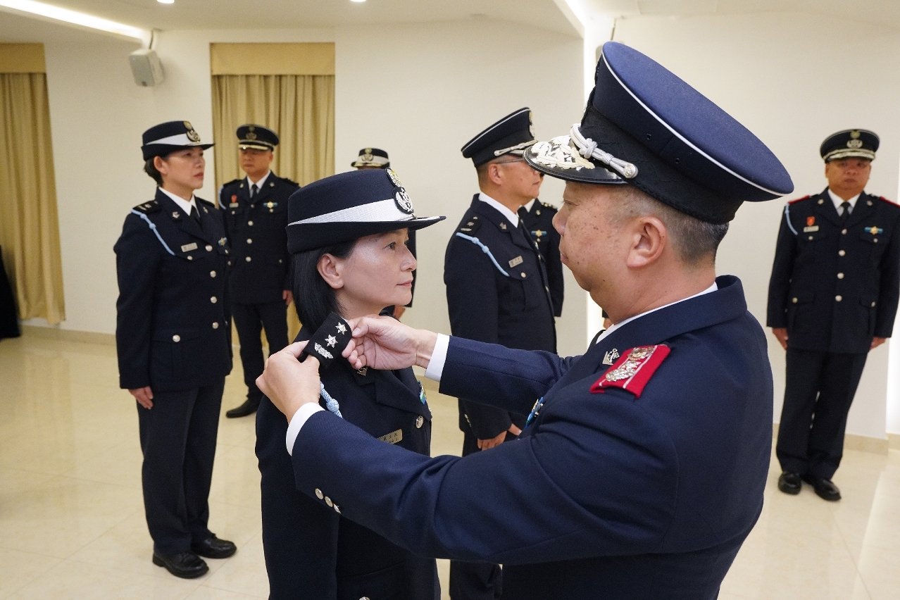 各晋升人员在宣誓后,由海关关长黄文忠为各人佩戴肩章,正式晋升成为高级关务督察,仪式上亦向获得总成绩优异奖的人员郑华锦颁发奖项。今次是自第13/2021号法律《保安部队及保安部门人员通则》生效后首批获晋升的高级关务督察,9名高级关务督察已在海关服务多年,专业知识扎实及工作经验丰富。