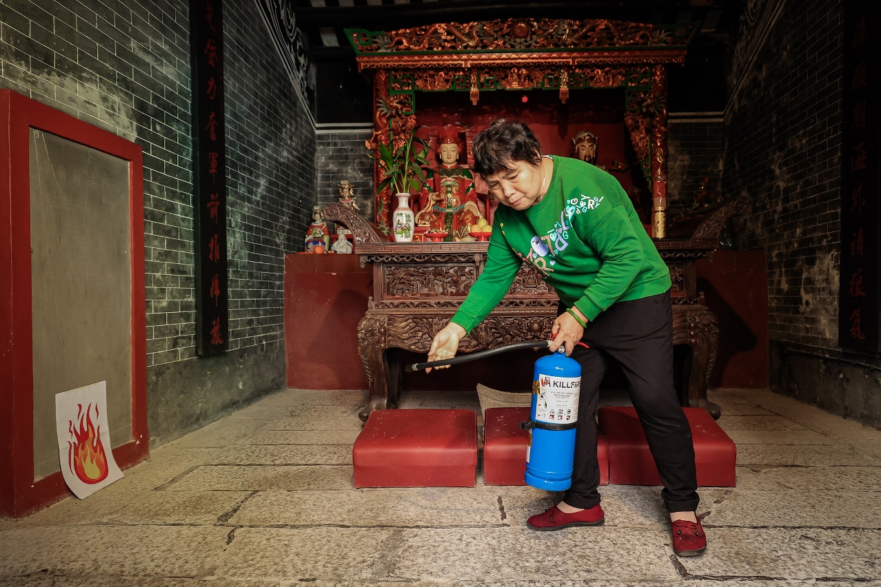 提高庙宇建筑的消防安全,需仰赖前线管理人员日常良好的防火及安全管理意识。为此,文化局自2013年起定期联同消防局,开办针对庙宇管理人员的消防安全知识培训,并自2020年起,培训内容增设针对文物建筑的火警演习。是次培训获得土地古庙(沙梨头)及沙梨头坊众互助会的支持,借出场地及派员协助进行培训及演习。