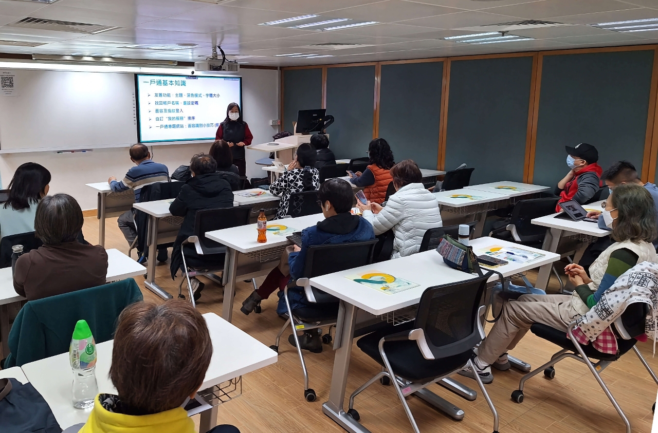 工作坊于日前在生产力中心举行,导师通过与学员互动、演示和影片分享,介绍了“一户通”的基本应用,包括:我的通关、电子身份、我的卡包、我的健康、在生证明、活动报名、生活缴费、预约柜枱、登记及更改地址等服务。此外,还介绍了一些近期推出的新服务,如:回乡证预约办理服务及卫生局的「到号领药通知」推送功能。参加者提出有关使用“一户通”的疑问,导师逐一解答,让他们更了解如何操作和应用,便捷地接收公共资讯,提升日常生活的便利性。