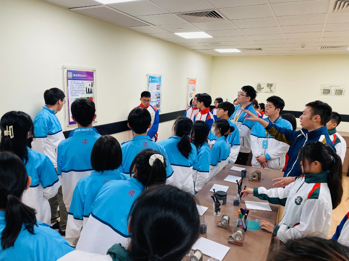 香港警务处公共关系部少年警讯组总督察胡世耀率领少年警讯会员到访参观司法警察学校,并与司警局“社区安全青年领袖计划”及“灭罪小先锋种子计划”学员会面交流,两地青年互相分享参与警方防罪宣传工作的心得和体会,促进对两地警务工作的认识,并建立了友谊。