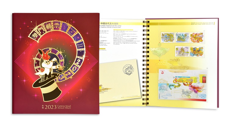 年册载有2023年发行的12套邮票和10枚小型张,内页以活页形式呈现精美的澳门邮品,并印有相关邮品的彩图和技术资料。