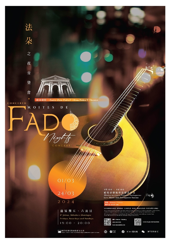 由文化局主办的“法朵之夜”音乐会,将于3月1至24日期间逢星期五、六、日晚上7至8时于岗顶剧院举行,带来合共12场传统法朵歌曲演出,门票2月1日起于澳门售票网、大麦网、Cityline公开发售。