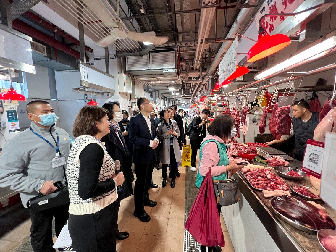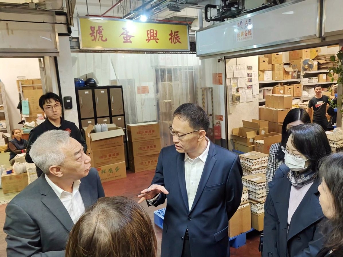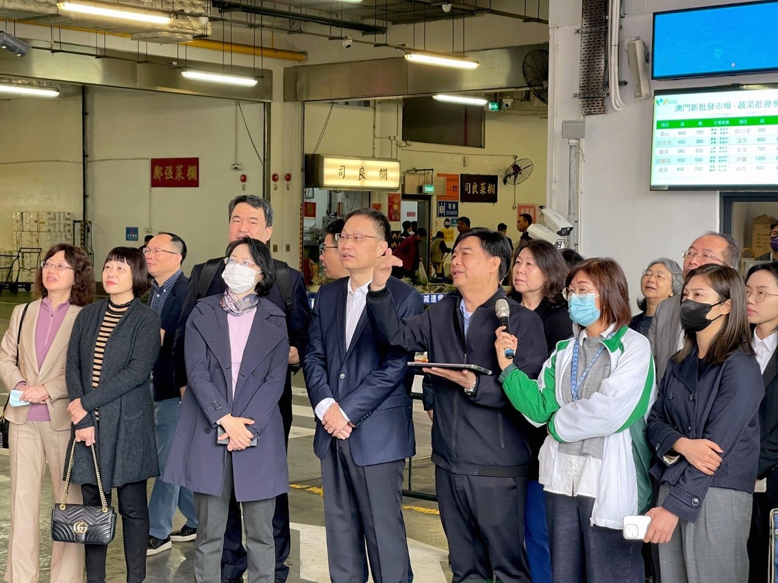 在澳期间,李兴干司长一行考察澳门新批发市场、沙梨头街市,了解相关的管理及经营情况,并与市政管理委员会主席戴祖义及副主席柯岚等进行交流座谈,了解澳门市场生鲜物资的需求和保障情况,多项措施进一步保障澳门生鲜物资稳定供应。