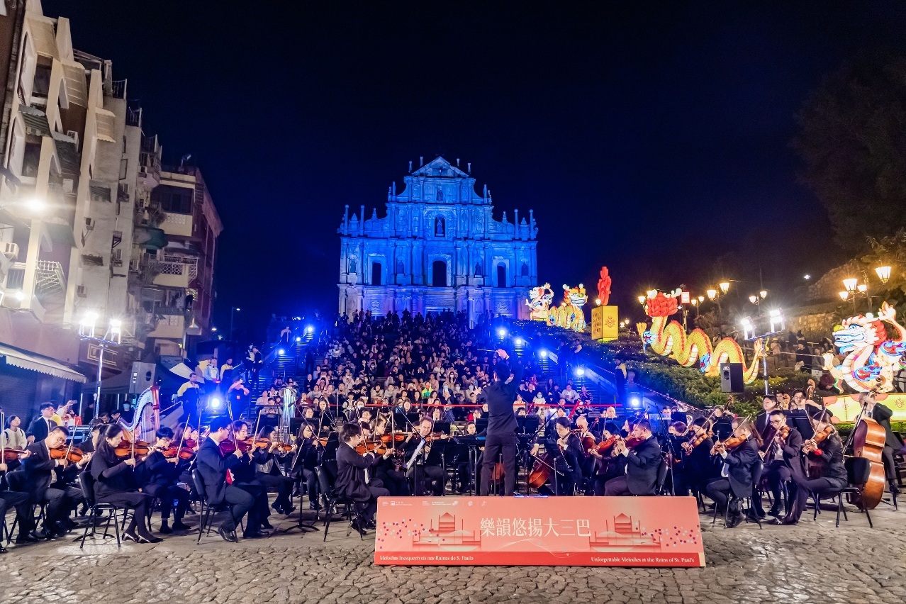 由文化局主办、澳门乐团有限公司承办的“乐韵悠扬大三巴”音乐会于情人节(2月14日)上演,乐团在世遗景点大三巴牌坊演奏多首浪漫乐曲,获乐迷热烈支持,活动同时透过多平台直播方式,让更多观众可观赏演出,传播澳门文化形象。