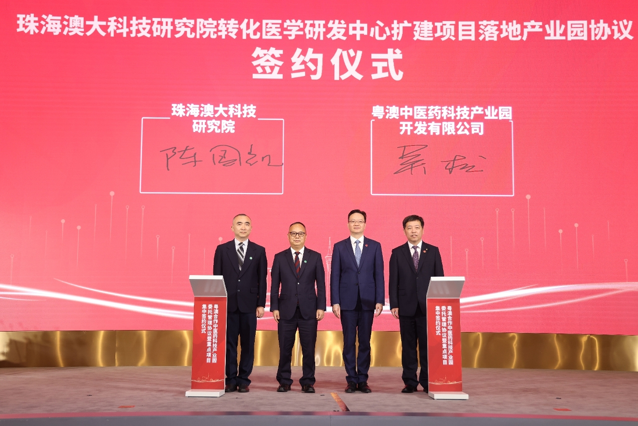 粤澳合作中医药科技产业园委托管理协议暨重点项目集中签约仪式20日在粤澳合作中医药科技产业园举行。签约内容包括《粤澳合作中医药科技产业园委托管理协议》,以及覆盖创新药械研发、高端医疗及康养服务、中医人才培养、中药材检测交易等17项重点签约项目,将为琴澳中医药大健康产业高质量发展注入动能。