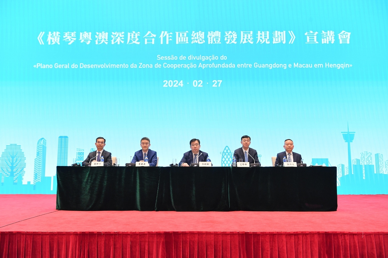 为凝聚粤澳共识、形成合力,更好推进横琴粤澳深度合作区及粤港澳大湾区建设,根据中央区域协调发展领导小组部署,澳门特区政府政策研究和区域发展局2月27日下午在“中国与葡语国家商贸合作服务平台综合体”举办《横琴粤澳深度合作区总体发展规划》(以下简称《横琴规划》)宣讲会。国家发展改革委区域协调发展司司长吴树林以“聚焦初心 深化合作 共同谱写横琴粤澳深度合作区建设新篇章”为题作专题宣讲。行政法务司司长张永春,中央港澳办三局副局长曹庆涛,广东省发展改革委党组书记、主任艾学峰,广东省政府横琴办主任、横琴粤澳深度合作区执委会副主任聂新平出席会议,政发局局长张作文主持会议。