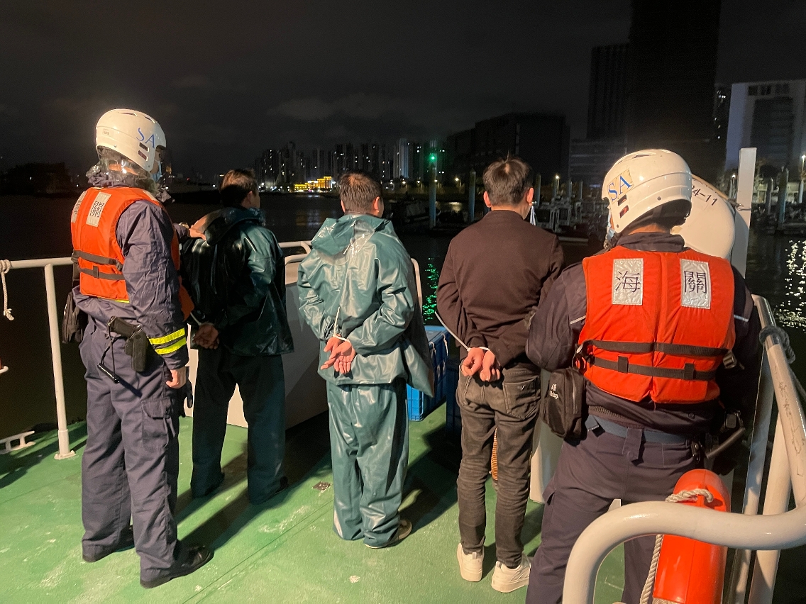 海关持续加强海上及沿岸执法,应用海域智能监控系统及红外线夜视摄像机等科技设备,对非法活动高风险地区进行全天候监控,提升执法能力及加强打击非法跨境活动力度,2月29日于外港航道附近成功破获1宗偷渡案件,截4人1船。