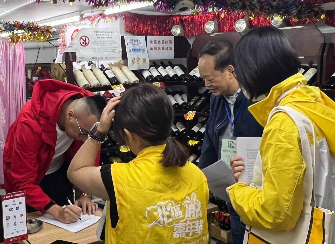 为更广泛宣传活动,推动更多商户参与,经科局联同商会到北区筷子基、黑沙环一带,向商户派发宣传单张,详细解释活动内容及参与活动的细节,解答疑问及提供协助。