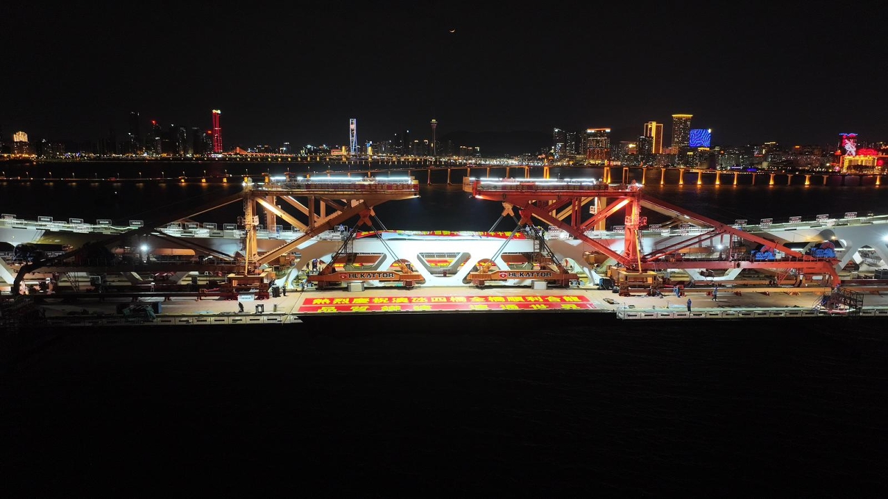 透过澳氹四桥的顺利合龙,标志着项目由主体结构工程全面迈入桥梁附属结构工程。合龙顺利完成为后续工序包括桥面防腐、防水、沥青铺装、车道护栏及风障安装、机电设备系统安装及调试等打下坚实的基础,创造良好的施工条件。