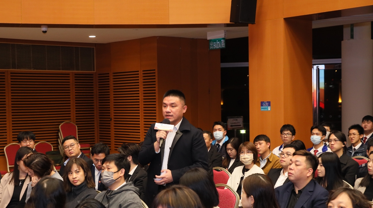高开贤先生分享两会的体会和感受,介绍两会的历史由来,指两会工作报告中字字珠玑,吸纳全国各地代表的意见和提案,作出一年的工作部署,并指示了如何有效贯彻落实各项政策的指标和举措,充分展示民主协商的治理氛围,以及以人民为中心的总体方向。高开贤先生亦表示国家领导十分关心澳门特区的发展,听取澳区代表委员的意见,并阐释新质生产力的词意为以创新、高质量的生产力推动国家发展,过去习近平主席曾经表示国家的发展离不开港澳,期望澳门因地制宜发挥本地的特有优势,珍惜国家的惠澳政策措施,抓紧更大更好的发展机遇,不负国家对澳门寄予厚望。