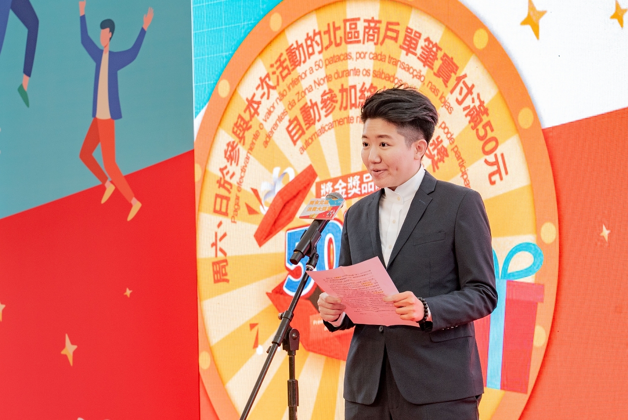 为提振北区经济,进一步改善民生区商户的经营,特区政府联同澳门中华总商会、澳门北区工商联会,于3月18日至8月4日期间,合办“周末北区消费大奬赏”活动,今(15)日在绿杨花园休憩区举行开幕仪式。