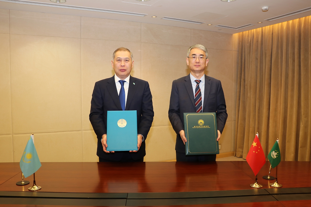 《中华人民共和国澳门特别行政区政府与哈萨克斯坦共和国政府互免签证协定》的签署仪式于4月9日在澳门特区举行,行政法务司司长张永春及哈萨克斯坦驻华大使沙赫拉特·努雷舍夫(Mr. Shakhrat Nuryshev)分别代表双方签署协定。
