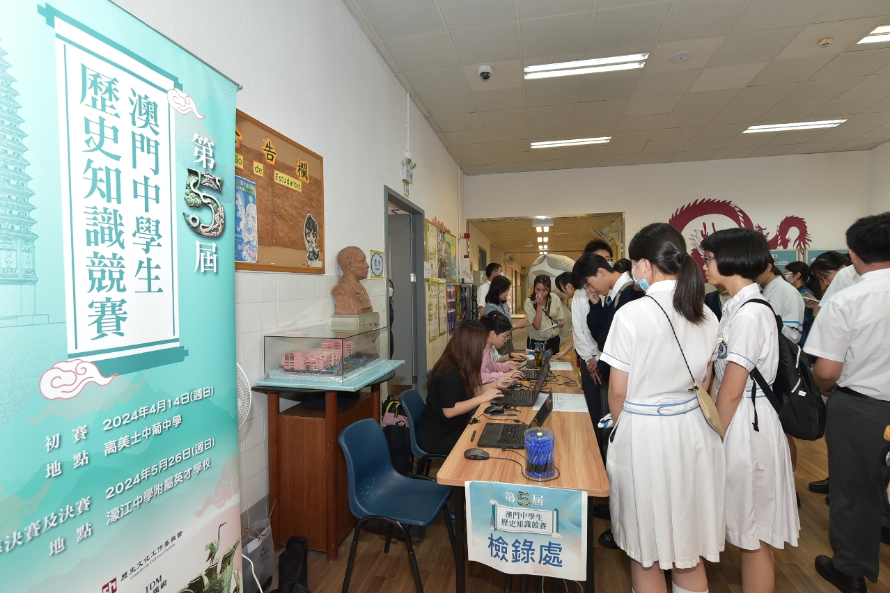为提高澳门中学生对中国历史文化的兴趣和对本地历史的了解,以及向市民大众普及历史文化教育,由澳门基金会及其历史文化工作委员会、澳门历史教育学会及澳门广播电视股份有限公司联合主办;河南省文物局指导;教育及青年发展局、文化局、澳门科技大学图书馆及河南省文物建筑保护研究院支持的第五届“澳门中学生历史知识竞赛”初赛已于2024年4月14日(星期日)假高美士中葡中学顺利举行。