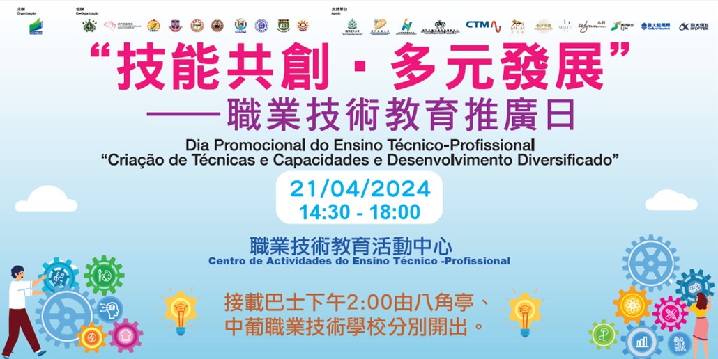 为推动澳门职业技术教育的发展,增进市民、家长和师生对高中职业技术教育的了解,教育及青年发展局将于4月21日在路环石排湾职业技术教育活动中心举行“技能共创‧多元发展”职业技术教育推广日,藉以向各界展现澳门职业技术教育的发展现况和课程特色,展示学生的优秀学习成果。