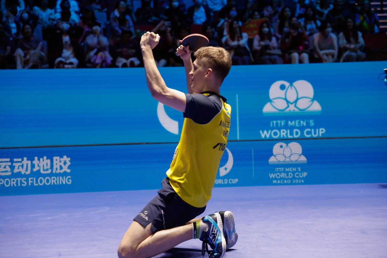 男子世界杯及女子世界杯今日进行了十六进八的赛事,卫冕冠军的樊振东内斗小将林诗栋激战七局才分胜负,林诗栋虽曾领先局数3比1(11比7、9比11、12比10及11比6),惜无助晋级,落后的樊振东重整旗鼓,连赢三局11比9、13比11及15比13,最终以局数4比3反胜勇闯八强。王楚钦迎战巴西的雨果‧卡尔德拉诺,在两度落后下追平局数2比2,随后乘勇以11比8及13比11连胜2盘,局数胜4比2取得八强一席。另外,梁靖昆面对瑞典安东‧卡尔伯格,需打足七局才分胜负,梁靖昆艰苦追平局数3比3后,在决胜局无奈负6比11,局数输3比4,十六强止步。其余赛果,林高远、马龙均以同样局数4比2分别战胜了斯洛文尼亚的达科‧约奇克及法国费利克斯‧勒布伦。