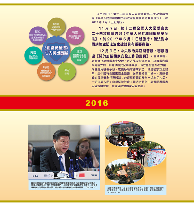 十年来,在总体国家安全观的引领下,国家安全得到全面加强。在展览的第二部份重点回顾了总体国家安全观提出十年以来,国家安全理论发展成果和重要事件。