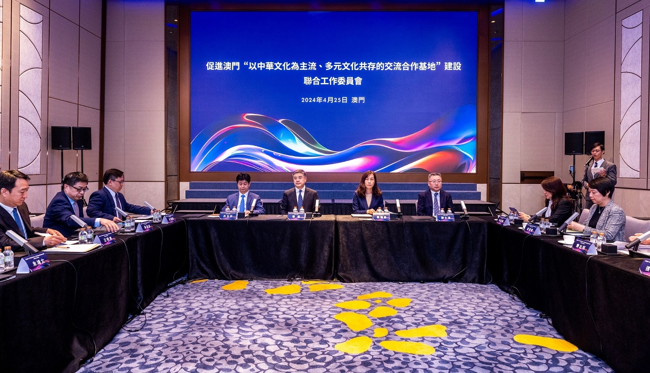 促进澳门“以中华文化为主流、多元文化共存的交流合作基地”建设联合工作委员会(下称:联委会)4月25日召开2024年度会议,文化和旅游部副部长张政、澳门特别行政区政府社会文化司司长欧阳瑜、中央人民政府驻澳门联络办公室副主任吕玉印及中共中央港澳工作办公室四局副局长刘文达等出席,会议回顾自2023年成立联委会以来“一基地”建设的工作成果,并就未来拓展内地与澳门文化交流合作进行讨论。