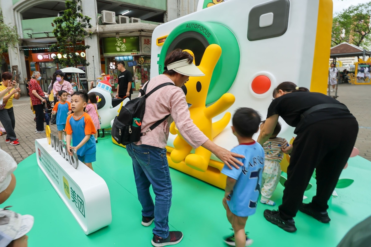 “澳门心喜遇”线下推广宣传同样吸睛。活动在北区绿杨休憩区打造线下特色街区,以澳门旅游吉祥物“麦麦”遇见美团吉祥物袋鼠“团团”在澳门各区展开丰富“旅游+”旅程为元素,结合AR应用、打卡装置和直播活动等,吸引澳门居民及旅客走入社区游览及消费,同时惠及周遭中小企业商户,带动区内人流,激发社区经济活力。