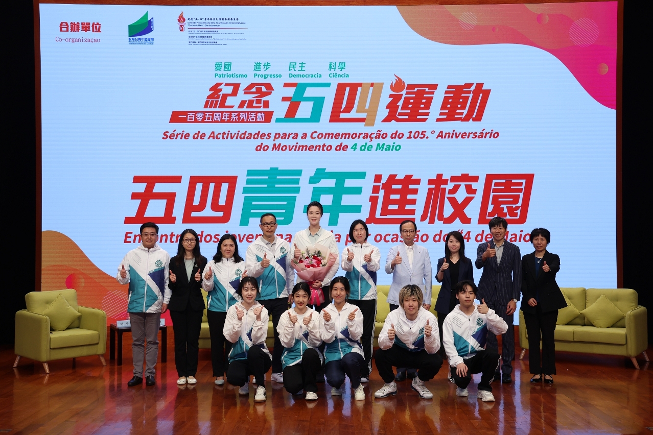 为纪念“五四运动”一百零五周年,由澳门特区政府教育及青年发展局、纪念“五四”青年节系列活动筹备委员会合办,澳门理工大学承办的“五四青年进校园”,首场高校活动于澳门理工大学举行。活动由国家女排前队长、奥运会金牌得主、国际排球联合会市场与传媒委员会委员、全国青联常委惠若琪担任主讲嘉宾,澳门理工大学三百名师生参加,场面热闹欢欣,交流气氛炽热。
