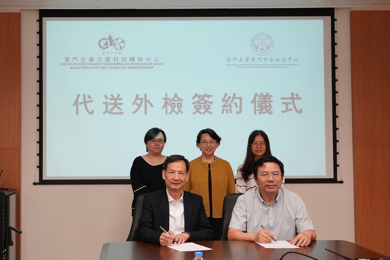 澳门大学澳门中药检测中心与澳门生产力暨科技转移中心签署《代送外检测服务合作备忘录》,推进服务澳门“1+4”经济适度多元策略和中医药产业发展。