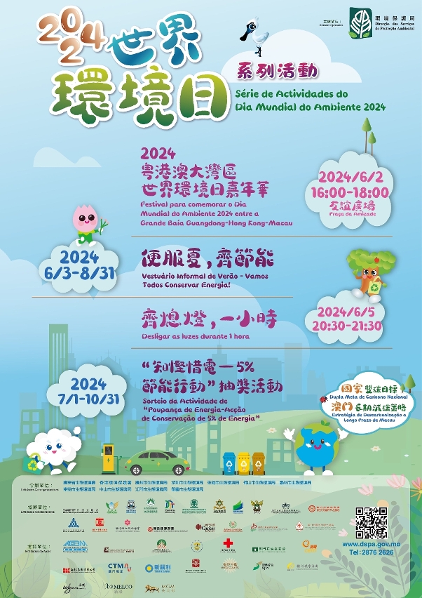 6月5日是“世界环境日”,环境保护局为推动社会各界力践国家“双碳”目标,在此一年一度的国际性环保节日,继续邀请粤港澳大湾区的环保部门、本澳多个公共部门、社团、综合酒店娱乐企业以及机构等联合举办2024“世界环境日系列活动”,活动包括:“粤港澳大湾区世界环境日嘉年华”、“齐熄灯,一小时”、“便服夏,齐节能”、“知悭惜电—5%节能行动”抽奖活动,期望透过系列活动深化粤港澳大湾区的环保合作交流,鼓励市民践行绿色低碳生活理念。
